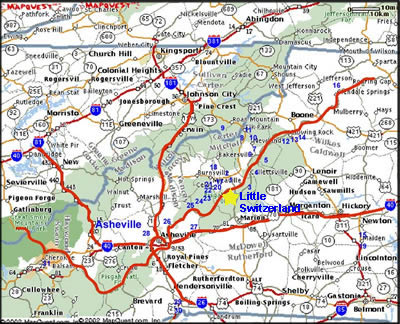 toward Milepost refers to markers along the Blue Ridge Parkway. Little Switzerland is at Milepost 334.